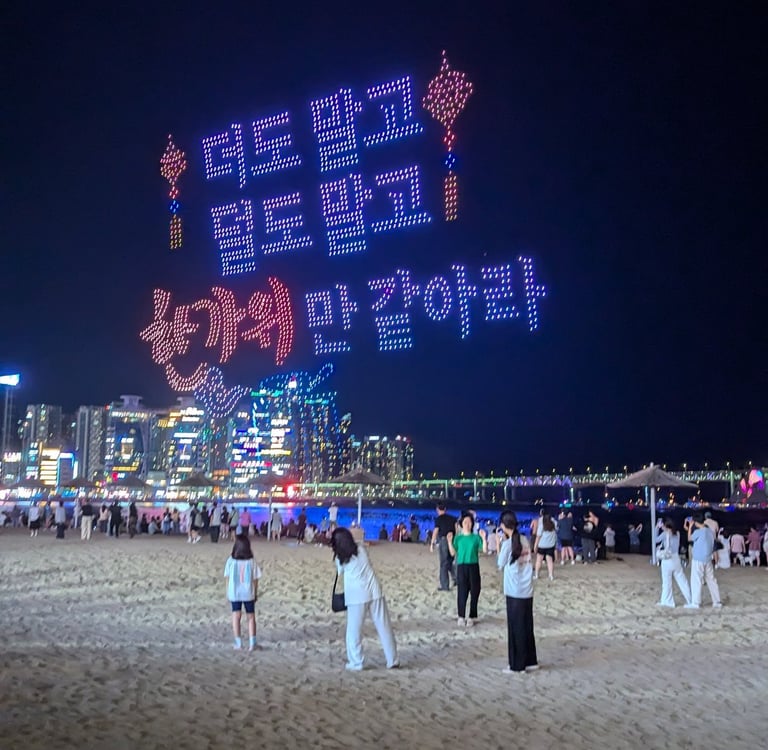 When I went to Gwangalli Beach for the first time, I went to the weekly drone show. This is a must see for anyone visiting Busan. There are two drone shows every saturday, the schedule is as follows:
